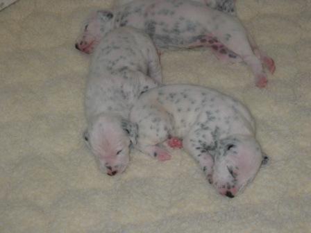 Puppies are growing and getting their spots. Grace loves being a Mom to so many this time.