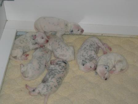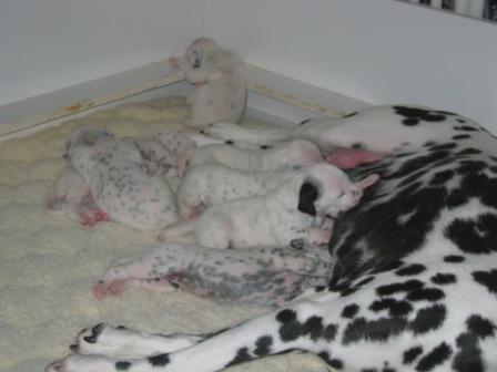 Puppies are growing and getting their spots. Grace loves being a Mom to so many this time.